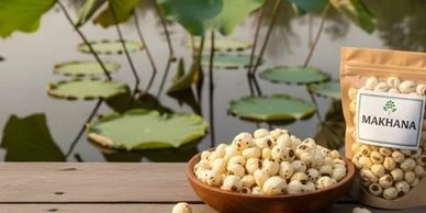also called Makhana, phool makhana, gorgon nut, Euryale ferox seed, or “lotus seed” are puffed edible seeds traditionally harvested from aquatic plants grown in ponds and wetlands.